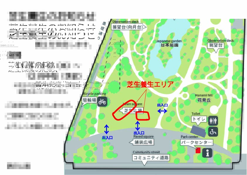2025年11月13日(木)~2025年12月中旬頃まで、芝生保護のため芝生広場の一部で養生を行っています。